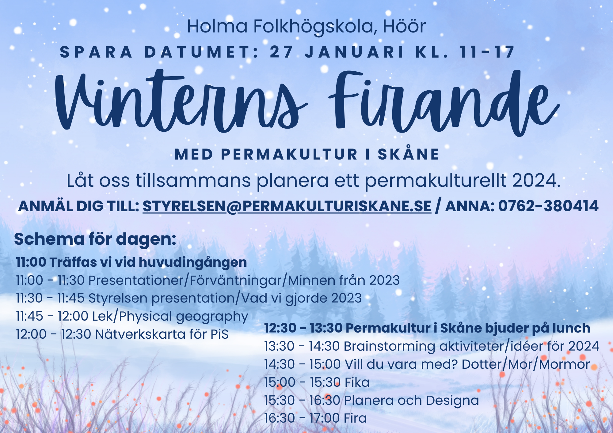 Vinterns-firande-Permakultur-i-Skåne-schema.png Publicerat den 19 januari, 2024 under Anmäl dig till vinterfirandet på lördag nästa vecka, 27.01!Full upplösning (2000 × 1414) ← Föregående